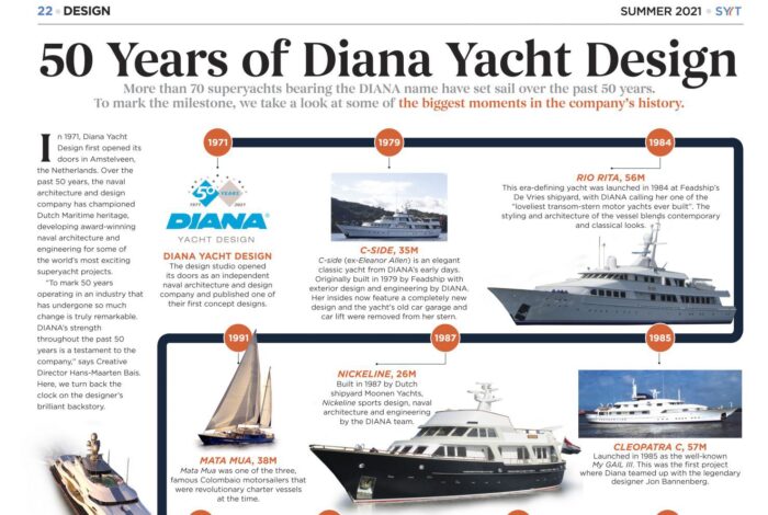 50 Years of Diana Yacht Design Written by: Parisa Hashempour Publication: SuperYacht Times In 1971, Diana Yacht Design first opened its doors in Amstelveen, the Netherlands. Over the past 50 years, the naval architecture and design company has championed Dutch Maritime heritage, developing award-winning naval architecture and engineering for some of the world’s most exciting superyacht projects.…