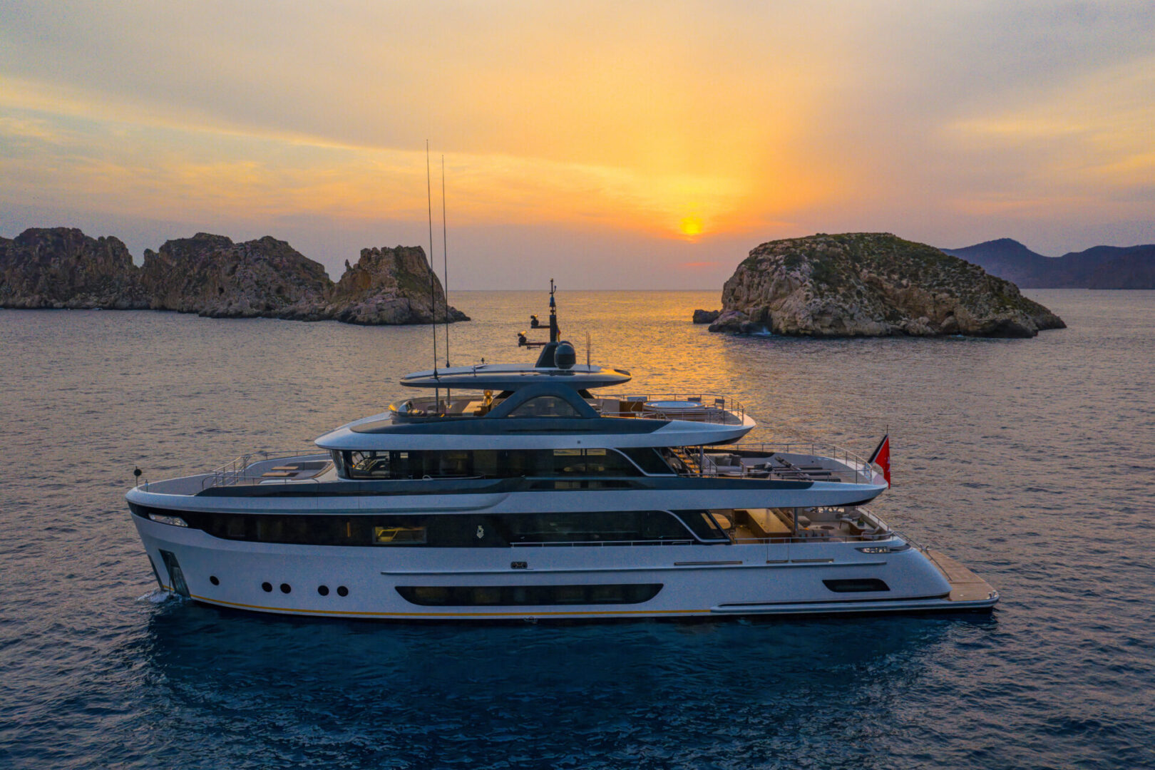 A full-beam beach club brings guests closer to the water, featuring a sauna, steam room, day-head and transformer swim platform. High bulwarks ensure safety on deck, while integrated balconies beside the wheelhouse provide unobstructed sea views.